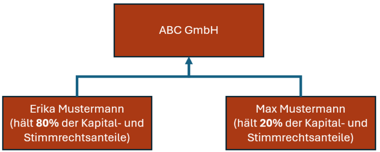 Erika Mustermann hält mehr als 25% der Kapital- und Stimmrechtsanteile und ist somit wirtschaftlich Berechtigter der ABC GmbH.
