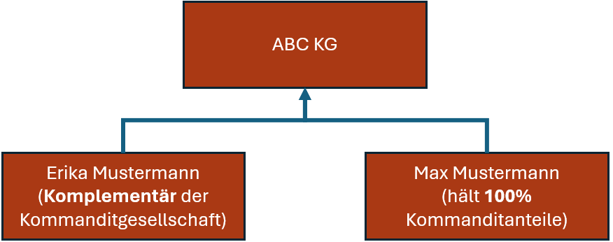 Erika Mustermann übt, aufgrund ihrer Stellung als Komplementär, Kontrolle auf sonstige Weise aus und gilt somit als wirtschaftlich Berechtigte. Max Mustermann hält mehr als 25% der Kapitalanteile und gilt ebenfalls als wirtschaftlich Berechtigter der ABC KG.