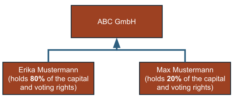 Erika Mustermann holds more than 25% of the capital and voting rights of ABC GmbH and is therefore considered beneficial owner.